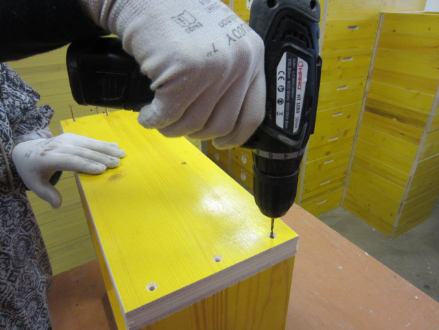 5. Boky jsou již předvrtány a zahloubeny, přes tyto otvory předvrtáte čela nástavku.